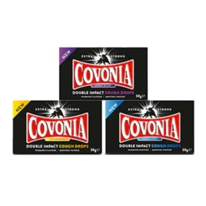 Product descriptionCovonia Double Impact Cough Lozenges Strong Original have a dual action formula. One half warms your throat and mouth while the other releases powerful menthol flavours. To give you the sensation of relief from your cough. Product detailsThe recipe for Covonia Cough Drops has been specially created with really powerful flavours. The cough drops are formed in two halves, the brown side contains a warming flavour, while the white side is mentholated. FeaturesGluten free Hand made the traditional way in Yorkshire Suitable for vegetarians Double impact cough drops How to useDue to the menthol content it is recommended not to eat more than 10 lozenges a day. |