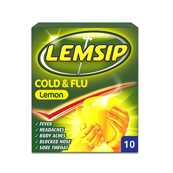Details:IngredientsActive Ingredients (per sachet): Paracetamol 650mg, Phenylephrine Hydrochloride 10mg, Also includes Aspartame, Lactose, Sodium and Sucrose, Total contents of Sachet 4.8g DirectionsHow to take:For oral use. Pour one sachet of powder into a mug and fill with hot, but not boiling, water. Stir until dissolved. If preferred, sweeten to taste with sugar, honey or your usual sweetener. How much to take:Adults and children 12 years and over: 1 sachet every 4 to 6 hours as required. Do not exceed 4 sachets in 24 hours. Do not give to children under 12 years of age. DO NOT EXCEED THE STATED DOSE. Warnings:CONTAINS PARACETAMOL. Do not take with any other paracetamol-containing products. Immediate medical advice should be sought in the event of an overdose, even if you feel well. If symptoms persist consult your doctor. DO NOT TAKE IF:allergic to any of the ingredients, if you have heart disease or high blood pressure. Safety WarningKEEP OUT OF THE REACH AND SIGHT OF CHILDREN. Store below 25°C in a dry place. Min Age Limit (Advisory): 16 years+ For effective relief of colds and flu symptoms use Lemsip cold and flu lemon flavour sachets. Contains paracetamol. Not suitable for those under the age of 16. Comes in a pack of 10 sachets to be mixed with hot water. Do not store above 25 degree Celsius. Store in the original package. Always read the label. The full Lemsip cold and flu range, for cold and flu relief. Note: This is a medicine, no prolonged use without medical advice, keep away from children, reading the package insert. Ask your doctor or pharmacist. In case of side effects, contact your doctor. |
