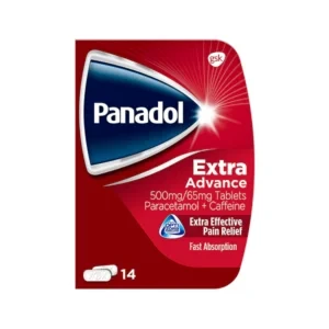 Detail: Panadol Extra Advance Tablets are formulated to provide effective pain relief and help to reduce fever. The tablets contain two active ingredients. Paracetamol is a pain reliever and caffeine acts to further amplify the pain-relieving effect of paracetamol. When you’ve got a headache, Panadol Extra Advance can deliver powerful, effective relief. And it’s gentle on your stomach too. Panadol Extra Advance can relieve tough head pain including Migraines. Containing paracetamol, Panadol Extra Advance can also relieve common types of pain, including back pain, toothache, period pain, and joint pain. Ingredients Each tablet contains the active ingredients Paracetamol 500 mg and Caffeine 65 mg, Also includes a mixture of Sodium Methyl (E 219), Sodium Ethyl (E 215), and Sodium Propyl (E 217) Parahydroxybenzoates. As we are always looking to improve our products, our formulations change from time to time, so please always check the product packaging before use. Safety Warning Take special care to ask your doctor before you take this medicine if you have liver or kidney disease, including alcoholic liver disease. If you have a severe infection (see section 1 inside for more information). Avoid too much caffeine in drinks like coffee and tea, high caffeine intake can cause difficulty sleeping, shaking, and an uncomfortable feeling in the chest. Talk to a doctor at once if you take too much of this medicine, even if you feel well. This is because too much paracetamol can cause delayed, serious liver damage. Contains paracetamol. Do not take anything else containing paracetamol while taking this medicine. If headaches become persistent, see your doctor. Keep out of the sight and reach of children. |