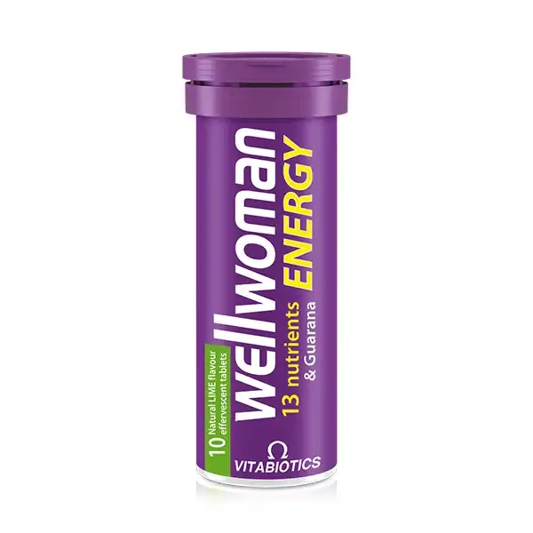 Wellwoman EnergyWellwoman Energy is an advanced effervescent formula designed to provide nutritional support on the go and an extra boost of energy releasing vitamins when needed. Each tablet conveniently dissolves into a glass of water to make a great tasting natural lime or orange flavoured drink with just 7 calories. Hectic LifeModern women live life to the full, and hectic schedules and social demands sometimes make it hard to find time to look after yourself. To support busy lives, Wellwoman Energy provides magnesium, iron and niacin (vitamin B3) which contribute to normal energy release, plus iron which supports normal oxygen transport in the body. Late NightsWorking long hours and getting to bed late can really take its toll on your body and ability to concentrate. Wellwoman Energy provides essential vitamins and minerals including folate and pantothenic acid which contribute to the reduction of tiredness and fatigue. The formula also includes iron and zinc which contribute to normal cognitive function, plus Guarana extract which provides a natural source of caffeine. TravelWhether you travel short distances or long haul across time zones, your body feels the effects. Wellwoman Energy includes vitamins C, B6, B12 and minerals zinc and iron to support normal immune system function, plus riboflavin (vitamin B2). The advanced formula also provides L-Carnitine.
