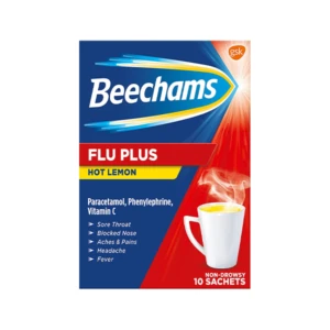 Preparation and UsagePlease read the enclosed leaflet carefully before taking this medicine. How to Take:For oral use. Empty contents of one sachet into a mug. Half fill with very hot water. Stir well. Add cold water as necessary and sugar if desired. Usage:Adults and children aged 16 years and over: The contents of one sachet to be taken every four to six hours as necessary. Do not take more than four sachets in any 24 hours. Safety WarningDo not give to children under 16 years of age except on medical advice. Do not take for more than 7 days except on medical advice. DO NOT TAKE MORE MEDICINE THAN THE LABEL TELLS YOU TO. IF YOU DO NOT GET BETTER, TALK TO YOUR DOCTOR. DO NOT TAKE with other flu, cold or decongestant products. Contains paracetamol. Do not take anything else containing paracetamol while taking this medicine. Talk to a doctor at once if you take too much of this medicine, even if you feel well. CONSULT YOUR DOCTOR Before taking this medicine, if you are under the care of your doctor or receiving prescribed medicines or are pregnant. KEEP OUT OF THE SIGHT AND REACH OF CHILDREN. IngredientsEach Sachet contains: Paracetamol 1000 mg, Ascorbic Acid 40 mg, Phenylephrine Hydrochloride 10 mg. Also includes sucrose. Sodium content 0.12g per sachet. See enclosed leaflet for further information. As we are always looking to improve our products, our formulations change from time to time, so please always check the product packaging before use. Paracetamol Phenylephrine Vitamin C What are they for? Beechams Flu Plus Hot lemon powder for oral solution provides relief from the symptoms of colds and flu, including feverishness and chills, headache, sore throat pain, aching limbs, blocked nose and painful sinuses. Each sachet contains: Ingredients: Paracetamol 1000 mg, Action: Painkiller and fever reducer, Relief of: Headache, sore throat, shivers, fever, aches; pains Note: This is a medicine, no prolonged use without medical advice, keep away from children, reading the package insert. Ask your doctor or pharmacist. In case of side effects, contact your doctor. |