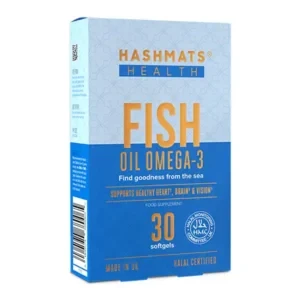 Product DescriptionHashmats Healthy Fish Oil Omega-3 provides a rich source of essential fatty acids from wild fish in Peruvian waters. It includes 330mg EPA and 200mg DHA in each odourless soft gel. This supplement will help with: Heart: EPA & DHA contribute to the normal function of the heart. Brain: DHA contributes to the normal function of the brain. Vision: DHA contributes to the maintenance of normal vision. The Hasmats supplement range is Halal certified Free From: Gluten, wheat, lactose, milk, artificial colours, preservatives & flavourings How To UseRecommended for Adults and Teenagers over 12 years of age: Take ONE or TWO soft gels per day with your meal. Swallow with water or a cold drink. Not to be chewed. To be taken on a full stomach. |
