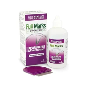 Details: CLINICALLY PROVEN TO KILL HEAD LICE AND ELIMINATE EGGS: Unlike traditional head lice treatments with pesticides which poison lice, full marks solution has a physical action on the lice causing them to dehydrate (lose water) and die; they can then be removed along with any eggs using the full marks removal comb supplied. EFFECTIVE FROM ONE USE: With a 5-minute treatment; repeat in 7 and 14 days if necessary. HOW TO USE: Please read the enclosed instruction leaflet carefully; 3 simple steps to kill head lice and eliminate their eggs: Detection, Treatment, Removal; for adults and children from 2 years. Directions Three simple steps to kill head lice and help eliminate their eggs. For adults and children from 2 years. Step 1: Detection – the only way to confirm a head lice infestation is by finding a live moving louse on the head. This can be done with the specially designed Full Marks Detector Comb. Step 2: Treatment – you should apply enough solution to cover the Step 3: Removal – after 5 minutes comb through the hair using the Safety Warning This treatment is not a water-based shampoo. Keep hair away from any naked flame or heat source and do not smoke whilst using this product. Please read the enclosed instruction leaflet carefully. Package Contains: 1 x Full Marks Head Lice Solution 200ml |