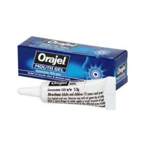 Product DescriptionOrajel mouth gel has been designed to provide you with rapid relief from pain, irritations and discomfort caused by mouth ulcers or wearing dentures. This easy to apply gel contains the active ingredient benzocaine which rapidly relieves pain in the area of application, it works as a local anesthetic numbing the painful area and easing pain. Warnings and cautionsDo not use continuously If the toothache persists, consult your dentist Not for use in children below the age of 12 years Keep out of reach and sight of children. How to useUsing a clean finger, apply a pea-sized amount of Orajel Mouth Gel to the affected area of your mouth. You can use this product up to four times every day for fast pain relief.